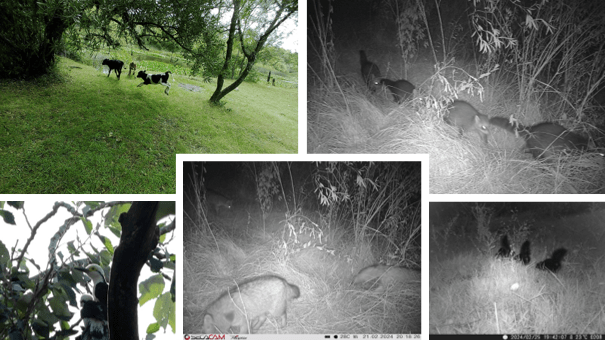 Our wildlife cameras also rewarded us with some awesome pictures of a family of crab-eating foxes (Cerdocyon thous) technically actually not in the fox family but rather in the family of hounds or dog-like animals (Canidae) (bottom middle). We have seen lots of foxes on camera – pretty much every night on any of the three cameras that we have now set up – even close to the house. And I finally got to see my dear manopelada (Procyon cancrivorus), one of two species of racoons living outside of the Caribbean Islands (the other one is the North American racoon that is invasive in Europe for instance). I had so far only seen their footprints which look like small hands when I find them in the mud. Thus, here a full family of four (top right picture) and very proud to see them reproduce as they are actually considered to be vulnerable on the IUCN list for Uruguay. One more reason why this entire region is in a protected area. Want to see more wildlife pics: donate to my gofundme so that we can expand the sightings.